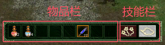 游戏内可以通过快捷键F8,迅速调出热键栏,热键栏分为物品栏和技能栏两个部分。