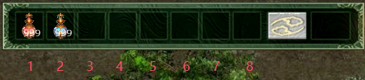 在物品栏中,可以利用数字键1至8来实现快速物品使用,其中1、2号键位只能装备红、蓝药。技能栏的使用可以通过鼠标右键单击或Shift+鼠标右键的组合来施放技能。还可以通过Ctrl+QWER等快捷键的组合迅速切换并装备不同的技能。